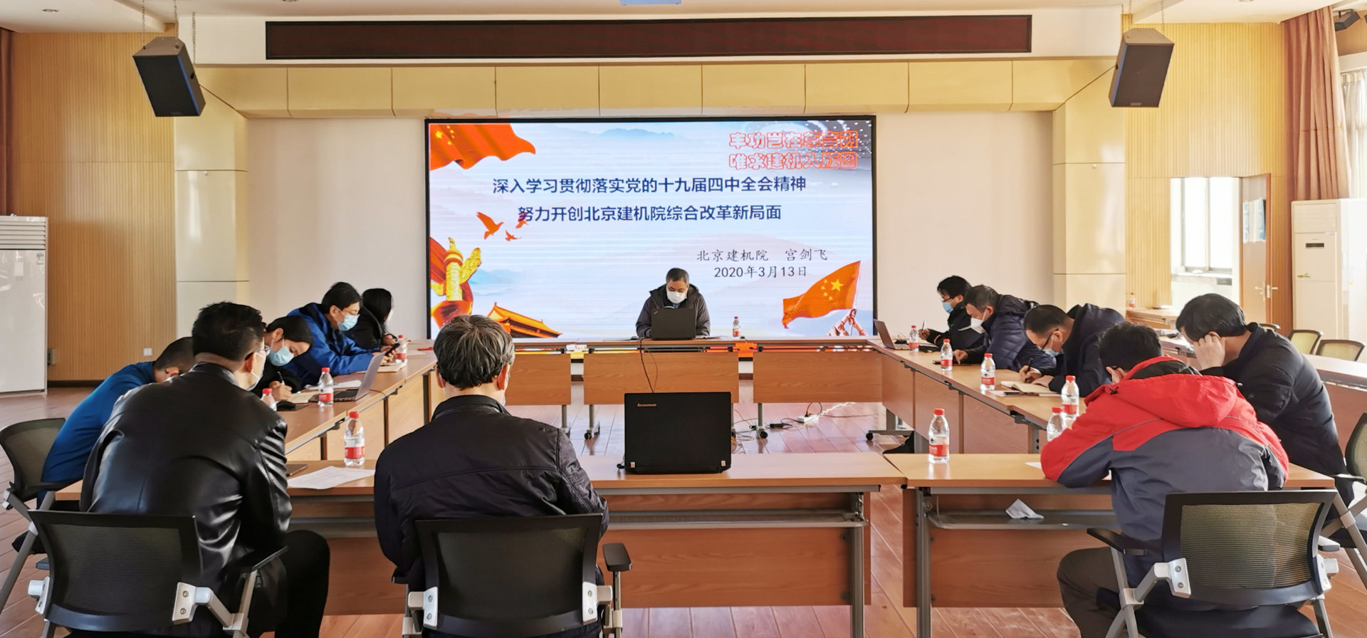 3月12至3月13日,北京建機院黨委領(lǐng)導(dǎo)班子成員以“學(xué)習(xí)貫徹落實十九屆四中全會精神,積極穩(wěn)妥有序推進北京建機院混改工作”為主題,圍繞“黨的十九屆四中全會召開背景、意義以及全會提出的堅持和完善中國特色社會主義制度、推進國家治理體系和治理能力現(xiàn)代化的總體要求、總體目標(biāo)、重點任務(wù)和重大舉措”等內(nèi)容,采用視頻會形式,深入各基層黨組織開展了宣講,推動全會精神學(xué)習(xí)下基層,營造了濃厚的學(xué)習(xí)貫徹氛圍。