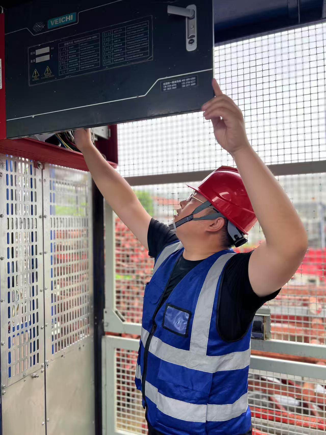 2022年7月,剛剛畢業(yè)的劉碩成加入公司。面對(duì)施工現(xiàn)場(chǎng)復(fù)雜的作業(yè)環(huán)境,他主動(dòng)要求從最基礎(chǔ)的崗位做起。白天跟著師傅安裝升降機(jī)、量尺寸、記數(shù)據(jù),晚上加班研究施工升降機(jī)安拆圖紙繪制?!澳菚r(shí)候白天全程執(zhí)行施工升降機(jī)安裝現(xiàn)場(chǎng)的安全旁站監(jiān)督,夜間整理白天采集的施工數(shù)據(jù),結(jié)合GB/T 26557-2021《吊籠有垂直導(dǎo)向的人貨兩用施工升降機(jī)》規(guī)范要求,進(jìn)行二維現(xiàn)場(chǎng)布置模擬”,劉碩成回憶道。憑借這股鉆勁,他僅用半年時(shí)間就掌握了施工升隆機(jī)安拆的全流程技術(shù)要點(diǎn),獨(dú)立完成的第一個(gè)施工升降機(jī)安拆方案就獲得公司總工的高度評(píng)價(jià)。